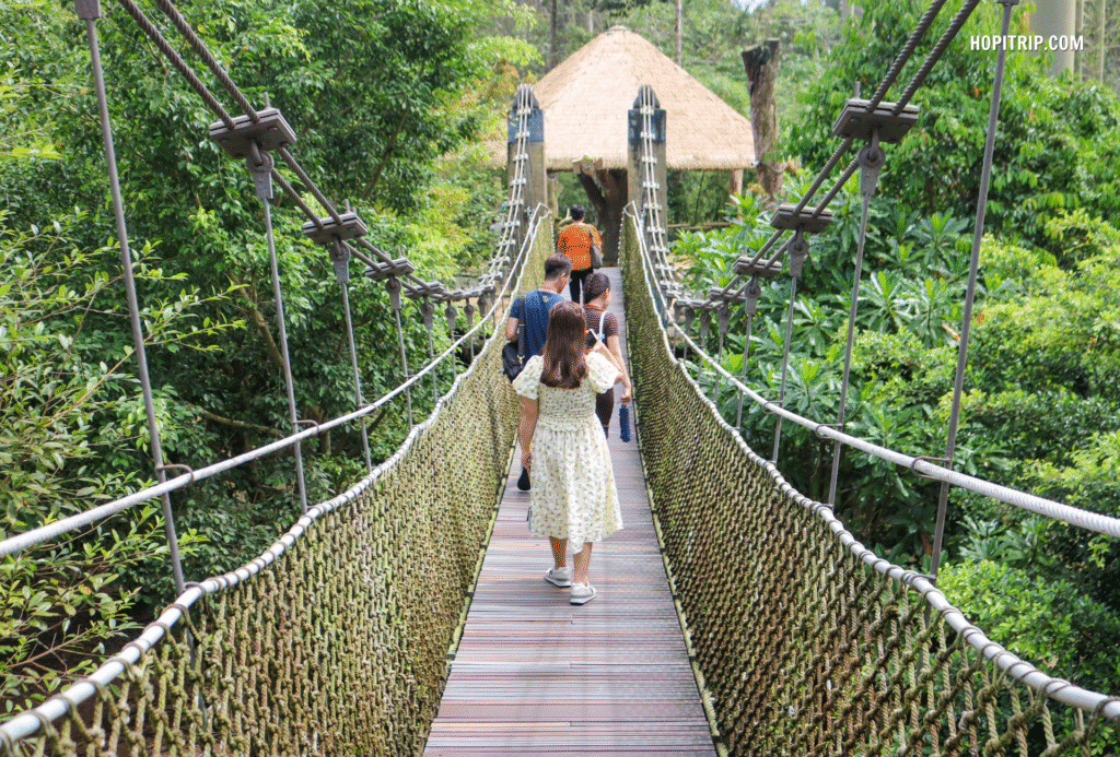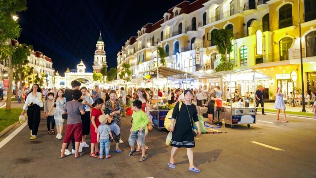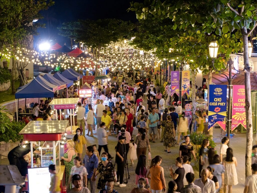 ➢ 4:00 PM: The Group takes the cable car back to Mediterranean Town. Visit Kissing Bridge. Dinner with local specialties, Quay Noodles (Bún Quậy) or Vietnamese clay pot rice (cơm niêu). Explore Vui Fest Night Market with street music shows. Free to explore Mediterranean Town at night, drink beer, and watch fireworks at Sunset Bazaar night market.